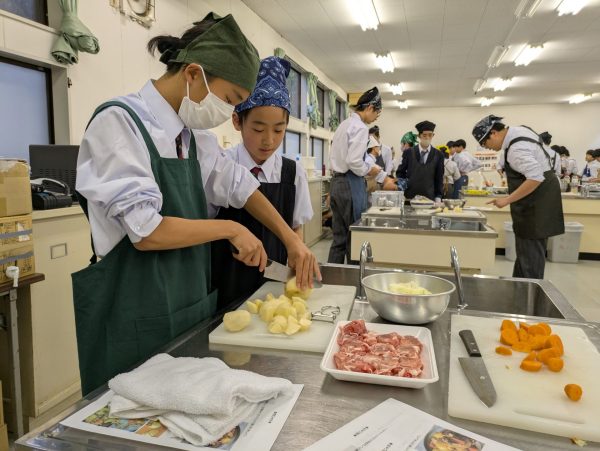 活動中、いい匂いにつられて家庭科室前を通る先生や生徒がよく覗いてくれます。このあいだは練習を終えた陸上部まで!