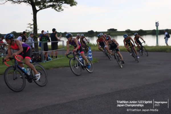 Swim 750m, bike20km, run2.5kmのスプリント距離で競い、昨年同様U23とは別レースに設定されました。認定級22級までの選手がタイムの上位順で60名まで参加可能で、一時期は選手が少なくU23とU19の同時レースでしたが、最近の大学生のトライアスロン人口の男子の伸びは顕著でU23はウェイティングが出るほどでした。OBのRyu, Makishi, Cloud, Ryuunosuke, Morisu もそれぞれの実力を発揮していました。