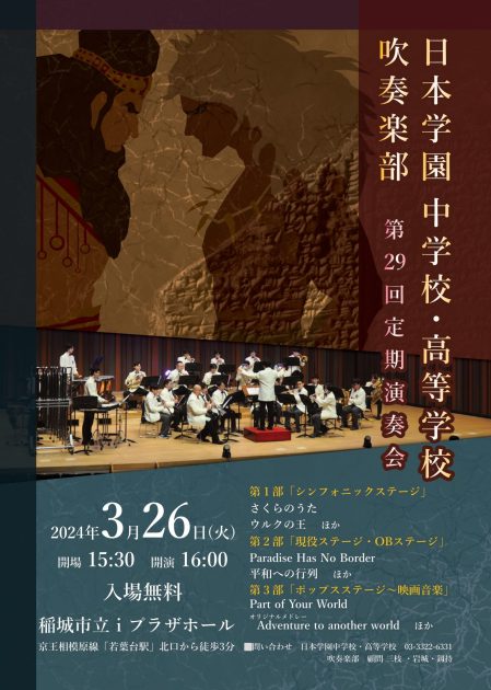 いよいよ吹奏楽部の集大成である「第29回定期演奏会」が2024年3月26日(火)に開催されます。