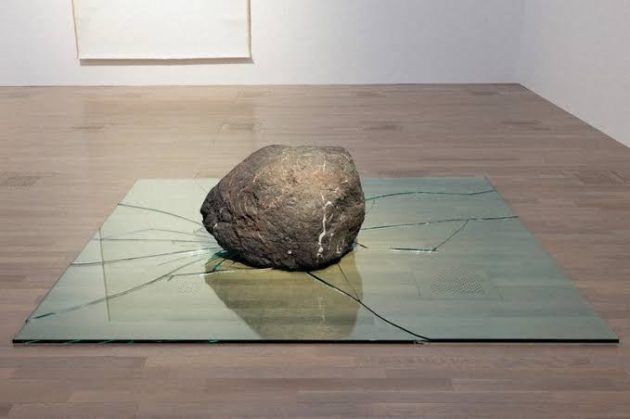 石が割れたガラスの上にごろっと置かれている。いや、この石がガラスを割ったのか?その周りをとりあえず眺めて回る。それに意味があるのか。しかし何か変だなと思うこと自体がすでにこころに化学変化を起こしている証拠です!