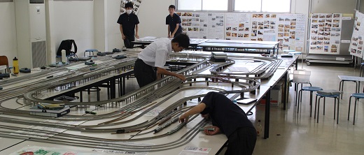 午後2時から撤収作業を始めました。10月に開催される日学祭の時も、素早くレイアウトを設営出来る様に、鉄道模型は同じ種類のレールをまとめて片付けました。会場の撤収は、かなり大変でした。今日は忙しい一日でしたが、他校の生徒たちと楽しく交流できたので良かったです。