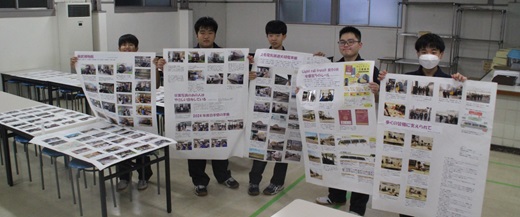 夏休み中に、1年間の活動についてまとめ、活動の様子を写した写真と解説文を模造紙に貼り、展示物を作りました。本日の部活動は、展示物の点検です。模造紙に貼られた解説文と写真で、剝がれそうになっているものを糊で貼り直しました。模造紙は、日学祭とオープンキャンパスにて展示会場に掲示します。何回か使うので、破れない様に、模造紙の裏面の隅に養生テープを貼り付け、補強しました。