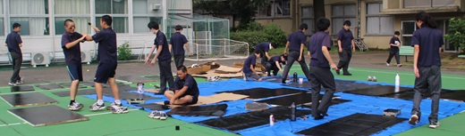 鉄研高校生部員たちは、クラス展示の準備の合間に、中学生部員たちは研究発表の準備や演劇の練習の合間に、入れ代わり立ち代わり鉄研の展示会場に来て、少しずつ鉄研会場の設営をすすめました。
