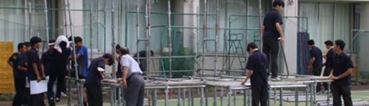 本日は学園祭全日準備の日です。各クラス、団体、皆で展示会場の設営や演劇の練習などに打ち込んでいます。