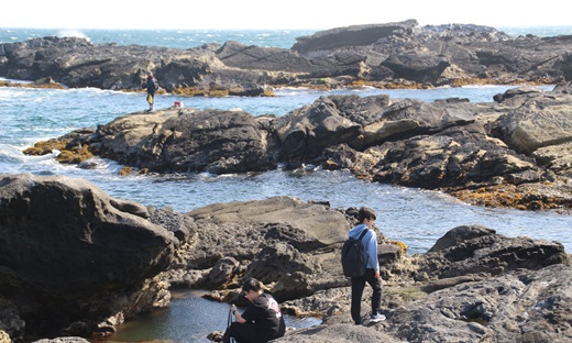 今回は仮入部の一貫として特別に参加させて頂きました。普段、家族で出かける際は、大半が自動車でしかも一人(親と離れて)県外に電車で出かけた経験がなかったのでとても新鮮でした。城ヶ島は比較的岩場が多く、ごつごつとした岩が多かったです。又、風が強く、海も荒れていて波も少々高かったです。しかし天気はとても良く、少し暑かったのでちょうど良かったです。そして、山の上からの景色もとても綺麗でした。