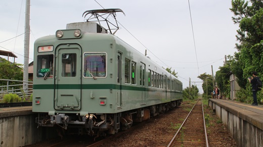 本日、鉄道研究部は、醬油の街、銚子に来ました。銚子電気鉄道を撮影しました。今年度の日学祭鉄道研究部の展示テーマは、「昭和の電車を紹介」なので、銚子電気鉄道デハ801や、銚子電気鉄道を走るかつての京王帝都電鉄2000系・5000系や南海電気鉄道22000形を撮影しました。銚子駅に着いたら早速22000形に乗り、終点の外川駅へ行きました。外川駅を折り返す22000系を撮影しました。外川駅には、デハ801が保存されています。デハ801は、1950(昭和25)年に帝国車輛にて製造され、松山の伊予鉄道に導入されました。1985(昭和60)年に銚子電気鉄道に譲渡され、1986年から25年間主力車両として運用されました。2010(平成22)年に引退後、架線点検車として使用されました。2015(平成27)年より外川駅の「昭和ノスタルジー館」として使用しれ、現在は閉館となっています。外川駅と犬吠駅の間で、畑の中を走る22000系を撮影しました。22000系は、急に乗客が増えた南海電気鉄道高野線の急行電車の混雑緩和のための増結用として導入された車両です。1969(昭和44)年より1972(和47)までに2両編成×16本の計32両が製造されまし。電車を撮影した後、犬吠埼の海岸を散策し、犬吠埼灯台を見学しました。犬吠埼灯台は、関東地方銚子半島の最東端の犬吠埼にあります。世界の灯台100選にも選ばれ、見学者数日本一の歴史ある灯台です。2020年12月23日に、国の重要文化財に指定されました。資料展示館には高さ約5m、総重量約13tの「国産第一号大型一等レンズ」が展示されていました。部員たちは、犬吠埼灯台の歴史や設備、灯台から見渡せる太平洋の景色に興味を持ちました。犬吠埼を散策した後、犬吠駅で昼食を食べました。笠上黒生駅へ行きました。笠上黒生駅は、上下交換ができる2面2線の駅です。電車が交換する時、タブレットを交換します。かつては手動でポイントを操作していました。現在はスプリングポイントになり、手動の操作が不要となりました。上りホームの南側に留置線があります。かつてはデハ101が留置されていました。今はユ101が留置されています。ユ101は、国鉄のワム80000を改造して納涼客車とした「澪つくし号」です。今日は草木に覆われていて、上手く撮影できませんでした。笠上黒生駅で電車の交換を撮影した後、次に笠上黒生駅と本銚子駅の間にある金矢踏切や本銚子駅で樹木に覆われた茂みの中を走る22000形を撮影しました。本銚子駅の駅舎は、2017年8月26日から8月27日にかけて放送された、日本テレビ系列『24時間テレビ40』の企画である「ヒロミの24時間リフォーム〜オンボロ駅を直そう!〜」で、本銚子駅の主な利用客である銚子市立清水小学校の生徒より依頼された、という形でヒロミがリフォームしました。本銚子駅の駅舎は外壁、屋根、待合室内を手直しし、外壁がレンガ調の大正風のものとなりました。待合室内には清水小学校の生徒が製作したガラスを用いてステンドグラスが飾られています。最後に仲ノ町駅へ行きました。仲ノ町駅では、ぬれ煎餅・各種記念切符・硬券入場券・乗車券・各種鉄道グッズなどが売られています。仲ノ町駅の駅舎は銚子遊覧鉄道時代に建てられた木造平屋建てで、銚子電気鉄道の本社があります。ホームの観音駅寄りにハドソンのゲーム『桃太郎電鉄』シリーズの協賛企画「しあわせ三像」のうち「貧乏がサル(去る)」像があります。側線があり、通勤・通学時間帯に運用される車両が待機しています。側線の南側に車庫があります。仲ノ町駅のホームや線路に沿う道路から、車庫に止まっているかつての京王帝都電鉄2000系・5000系電車を撮影しました。仲ノ町を駅を見学した後、銚子駅へ行き、総武本線に乗って帰りました。部員たちは、銚子電気鉄道を走る昭和に製造された電車や犬吠埼灯台の設備に大いに興味関心をもちました。