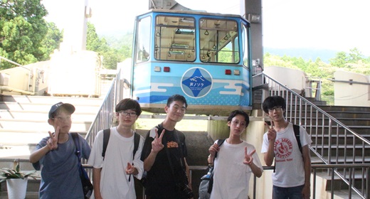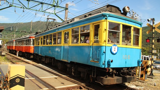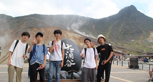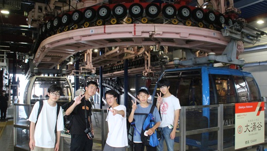 今回の校外活動は、箱根へ散策に行きました。部員たちの多くが小田急電鉄に乗って小田原まで来ることもあって、いつもは箱根フリーパスを使って箱根の観光をしていました。今回は、小田急グループの箱根登山鉄道や箱根ロープウェイ、西武グループの伊豆箱根バスで行ける観光地の両方を散策しました。まず、小田原駅から箱根登山鉄道に乗りました。箱根登山鉄道は、箱根湯本駅まで小田急電鉄の車両が乗り入れています。箱根登山鉄道の車両は、箱根湯本駅から強羅駅間を運行しています。電車自体は、車庫のある入生田駅まで来ます。小田急電鉄の車両は狭軌(1067mm)、箱根登山鉄道の車両は標準軌(1435mm)なので、入生田駅、箱根湯本駅間は三線軌条の区間です。箱根湯本駅に着くと、早速部員たちは箱根登山鉄道の車両、アレグラ号(3100形)と3000形を連結した3両編成に乗りました。1991年、箱根登山鉄道の年間輸送人員が1千万人をこえました。当時、箱根を訪れる観光客のうちの約半数が箱根登山鉄道を利用していたそうです。当時の箱根登山鉄道の最大輸送力は2両編成で15分間隔でした。ゴールデンウィークや箱根大名行列が開催される11月には、箱根登山鉄道に乗るのに2時間も待つことがあったそうです。そこで、全駅のホームが拡張されました。駅の両側がトンネルに囲まれた塔ノ沢駅は、工事に必要な大型機械を導入することが出来ず、小田原側のトンネルの拡幅を殆ど手掘りで行いました。3両編成化に必要な総工費20億円のうちの半分近くを塔ノ沢駅の工事に費やしました。変電所の増強や架線電圧を600Vから750Vへ昇圧、一部の車両を2両固定編成にしました。1993年7月14日より3両編成での運行が始まりました。部員たちは、出山信号場のスイッチバックで車内から早川の渓谷に架けられた早川橋梁を撮影しました。早川橋梁は、1917(大正6)年に架けられた橋長は60mの鋼ダブルワーレントラス橋です。その後、スイッチバックの大平台駅や彫刻の森駅と強羅駅の間で1000形、2000形、3100形2両固定編成「アレグラ号」などを撮影しました。「アレグラ号」は、2017年に導入された車両です。3000形1両と連結して3両編成で運行していました。連結部分は、運転室を撤去し連結間の窓を大きくしました。箱根の景色や急カーブの走行を間近で見られます。箱根登山電車は、箱根湯本駅(標高96m)、強羅駅(標高541m)間8.9kmを約40分で結んでいます。粘着式鉄道では日本一の急勾配80‰の坂を登ります。この急勾配に対応するために広軌の鉄道となっています。強羅駅でモハ1形の模型を見学してから、箱根登山ケーブルカーに乗りました。箱根登山ケーブルカーは、箱根登山鉄道線が3両編成になったことを期に、1994年11月25日から1995年3月15日まで運行を休止し、1995年3月16日よりスイス製の車両による2両編成のケーブルカーにしました。この時に、軌間が987 mmから983 mmに改軌されました。2019年に設備更新工事が行われることになり、2019年12月2日から運行を休止し、1995年に導入した車両の運行も終了しました。2020年3月20日より5代目となる新型車両ケ10・ケ20形での運行が始まりました。ケ10・ケ20形も2両編成で、車内は傾斜に合わせた階段状となっており、各車内の行き来ができます。1号車は、鉄道車両アレグラ号(3000形)と同じバーミリオンはこね色を、2号車は箱根山から見る青空をイメージした青色となりました。アクセントの文字表記は、金色の筆記体切文字を中心に配置されました。両端にはケーブルカーの複線部をイメージした「リボン状のモチーフ」などが配置されました。箱根登山ケーブルカーで早雲山駅へ行きました。早雲山から強羅や宮城野の景色を眺め、箱根ロープウェイに乗りました。箱根ロープウェイは、1959年に開業した早雲山と芦ノ湖の畔にある桃源台を結ぶ4kmの索道路線です。かつては複線自動循環式ロープウェイでした。2002年より早雲山-大涌谷間にて、2007年より大涌谷-桃源台間にて、複式単線自動循環式(DLM)フニテルが導入されました。フニテルは、2本のロープにぶら下がったゴンドラが循環する形式です。フニテルとは、屋根の左右にあるロープを掴む握索装置の幅がゴンドラの幅よりも広いものを示します。複式単線自動循環式の導入によりゴンドラ1機の定員が18人になり、輸送力は1時間当たり975人から1440人に増えました。強風による運休も減りました。部員たちは、ロープウェイに乗りながら大涌谷の絶景を眺めながめました。大涌谷は、3000年前に箱根の最高峰である神山が箱根火山最後の水蒸気爆発をおこした爆裂火口です。現在も噴気が立ち昇っています。今は、予約をし、ヘルメットを着用して専門のガイドさんに案内していただいて、噴気孔の近くを散策できます。部員たちは、大涌谷の噴気や神山を眺めながら昼食を食べました。大涌谷温泉で茹でた黒たまごを食べると寿命が延びると言われています。大涌谷には平安時代弘法大師によって作られたといわれている延命・子育ての「延命地