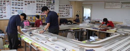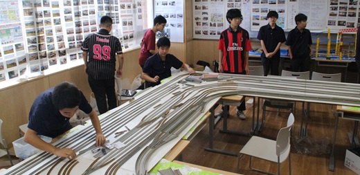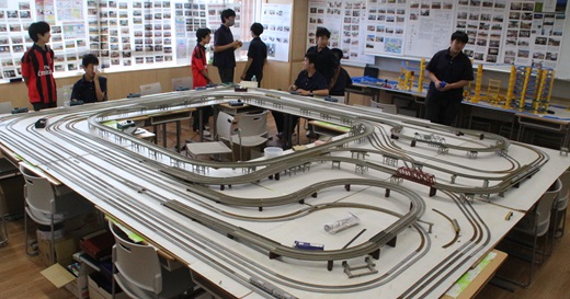 9月27日(土)、28日(日)に日学祭が開催されます。鉄道研究部も展示を行います。1年間の活動に関する報告を中心に、鉄道模型Nゲージやプラレールを展示します。1年間の活動に関しては、模造紙に写真と解説を付けました。活動報告集にもまとめました。鉄道模型Nゲージのレイアウトは、9系統の路線を組み、同時に9本の電車を走らせるように準備しました。運転コーナーを設け、お客様に7本の電車を運転していただくことにしました。40年ほど前の鉄道の写真も準備しました。展示を見れば分かるクイズに答えて下さった方に差し上げるための物です。本日は展示会場の設営がある程度できましたので、明日の準備日は主に鉄道模型の試運転です。上手く走らない箇所はレールの交換。
