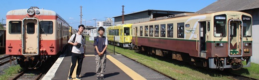 日学祭の代休日を利用して、ひたちなか海浜鉄道と鹿島臨海鉄道沿線を散策しました。北千住駅に集合し、常磐線に乗って、勝田駅へ行きました。勝田駅からひたちなか海浜鉄道湊線に乗りました。湊線は、茨城県ひたちなか市の勝田駅から旧那珂湊市街を経由して阿字ヶ浦駅とを結ぶ、ひたちなか海浜鉄道の路線です。1990年度までは海水浴シーズンに常磐線上野駅から臨時急行「あじがうら」が阿字ヶ浦駅まで乗り入れていました。2008年3月31日まで茨城交通の路線でした。2008年4月1日より、湊線はひたちなか海浜鉄道に移管されました。2008年度はひたちなか市が湊鉄道線存続支援事業として約2億円を支出しました。移管後は列車増発や最終列車の繰り下げ、新駅の設置、割安な年間通学定期券の発売など、利便性向上を試み、東北地方太平洋沖地震の影響により路線が被災し全線不通となった2011年度以外、第三セクター移行後輸送実績は少しずつ回復しました。部員たちは、井上工務店のラッピング広告が施されたキハ3710-01号車に乗り、阿字ヶ浦駅へ行きました。井上工務店の会長は商工会議所などの公職を務めた方で、湊線が廃線の危機にあった時、湊線の必要性を訴えて、おらが湊鐵道応援団の設立や社名の決定などに貢献された方です。長年の功績により旭日双光章を受章され、その祝賀会の日に合わせ、井上工務店の車両広告の出発となりました。部員たちは阿字ヶ浦駅に保存されているキハ22 2とキハ2005を見学しました。阿字ヶ浦駅構内には、鉄道車両がご神体になっている神社、ひたちなか開運鐵道神社があります。古にレールで作られた鳥居の先にご神体であるキハ22 2とキハ2005が保存されています。キハ22 2は、元羽幌炭鉱鉄道のキハ22 2です。1962年に富士重工で製造され、羽幌炭鉱鉄道に導入されました。羽幌炭鉱鉄道が廃止され、茨城交通に譲渡されました。2015年まで運行され、その後阿字ヶ浦駅構内に放置されていたものを2021年に保存も兼ねた観光資源としての「鉄道神社」として町おこしに使われることになりました。キハ2005は、かつての留萌鉄道のキハ2005です。2015年に廃車となった後に阿字ヶ浦駅構内に放置されていたものが整備されました。阿字ヶ浦駅で保存車両を見学した後、那珂湊駅の構内や車両基地に面する側道から気動車を撮影しました。構内にはミキ300やキハ205がありました。ミキ300は、1998年に富士重工で製造され、三木鉄道で運用されていました。2008年に三木鉄道が廃止され、2009年に茨城交通が購入しました。三木鉄道時代の塗装と車両番号ミキ300-103で運行されています。キハ205は、1965年に帝国車両で製造され、1996年に水島臨海鉄道より茨城交通が購入しました。車両基地の側道からケハ601やキハ20 429などの保存車両を撮影しました。ケハ601は、1960年に新潟鉄工製により制作されたステンレス気動車です。1992年に廃車になりましたが、車体が錆びないので構内で倉庫として使われていました。車内を整備し、ギャラリーとして公開された時もあります。キハ20 429は、1961年に日本車輛で製造され、広島に配属されました。1984年に鹿島臨海鉄道へ売却され、後に茨城交通へ譲渡されました。廃車後は那珂湊駅構内で保存されています。かつて上野駅から常磐線を通じての直通列車が乗り入れていたとあって、那珂湊駅、阿字ヶ浦駅ともに、ホームが長くて広かったです。