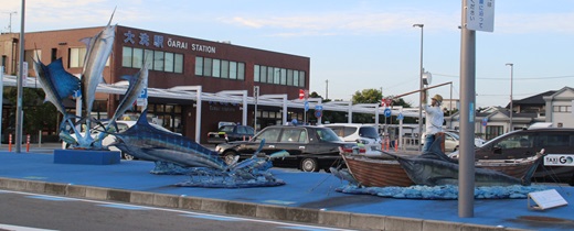 アクアワールド大洗を見学した後、茨城交通バスに乗り、大洗駅へ行きました。鹿島臨海鉄道は、貨物と旅客鉄道事業を行う第三セクター方式の鉄道事業者です。大洗駅に本社があります。大洗鹿島線と鹿島臨港線があります。鹿島臨海工業地帯への原料と生産品を輸送するために、1969年に国鉄や茨城県、進出企業の出資により設立された貨物専業鉄道(臨海鉄道)でした。一時期、新東京国際空港(成田国際空港)への航空機燃料の暫定輸送に対する地元への見返りとして鹿島臨港線北鹿島 – 鹿島港南間で旅客営業を行いましたが、乗客が少なかったので、パイプラインの建設により航空機燃料暫定輸送が終わった時に廃止されました。1984年、国鉄の財政悪化によって国鉄線としての開業が危ぶまれていた日本鉄道建設公団建設線である鹿島線北鹿島駅(現在の鹿島サッカースタジアム駅)以北を引き受けることになり、大洗鹿島線として旅客営業を行うようになりました。燃料輸送が終ってから、貨物のコンテナ化を進め、取扱量を伸ばしています。部員たちは、6000形や8000形などの気動車を撮影しました。6000形は、1985年から日本車輌と新潟鐵工所のライセンス生産で製造された鋼製車体、両運転台式の気動車です。中央部に転換クロスシートが配置されたセミクロスシート車です。8000形は、2016年から新潟トランシスで製造された鋼製車体、両運転台式の気動車です。新潟トランシス製の関東鉄道キハ5000形気動車に準じた3扉オールロングシート車で、車端扉が片引き戸、中央扉が両開きとなっています。部員たちは、大洗駅施設や気動車を撮影し、鹿島臨海鉄道に乗り水戸駅へ行きました。大洗駅から水戸駅までの高架区間からの景色を眺めながら、「全部立体交差とは、豪華な設備だな。」と感じました。車窓から海門橋と大荒マリンタワーが良く見え、那珂湊駅と大洗駅の距離が、バスで乗った印象に比べて、割と近いなと感じました。夕暮れの水戸駅で常磐線に乗り、「だいぶ日が短くなってきたな。今度は工場の夜景を楽しめる岳南鉄道に乗ろう。」ということになり、東京へ帰りました。