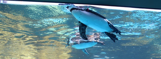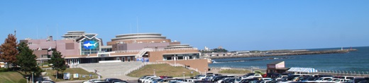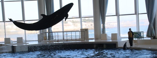 那珂湊駅を見学した後、湊公園から那珂湊漁港など那珂湊の街並みを眺めてから、海を眺めながら海門橋を通て、那珂川を渡り、大洗町にあるアクアワールド大洗水族館へ行きました。アクアワールド大洗は、太平洋に面した、大型水族館です。2002年に大洗水族館をリニューアルし、博物館や科学館の展示手法を取り入れた海の総合ミュージアムとして開館しました。ひたちなか市の国営ひたち海浜公園とともに茨城県を代表する海岸部のレジャー施設です。阿字ヶ浦駅から国営ひたち海浜公園もで、ひたちなか海浜鉄道で結ばれる計画もあります。アクアワールド大洗には、65の展示水槽があり、大洗沖の魚貝類から世界中の海や川の生物まで、約580種68,000点の生物が展示されています。シンボルマークになっているサメの飼育に力を入れていて、種類数は55種です。他に日本一の大きさであるマンボウ専用水槽があります。茨城県初の確認記録だったセミクジラの骨格標本、マッコウクジラの骨格標本、ウバザメ剥製があります。テーマ別に8つのゾーンとマーケットプレイス・フードコートがあり、「茨城の海と自然・世界の海と地球環境」を基本テーマに、地球全体の環境について理解できる展示になっています。日本で最初にペンギンショーを行った水族館です。部員たちは、大洗と苫小牧を行き来するフェリーさんふらわあ かむい・ぴりかを眺めながらフードコートで海鮮丼を食べました。アシカやイルカのショー、ペンギンやカモノハシなどを見学しました。