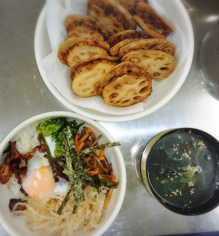 この日は「ビビンバ丼」と「蓮根のはさみ揚げ」でした☆