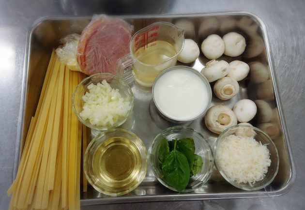 今回は『クリームパスタ』を教えて頂きました。材料はこちらです。