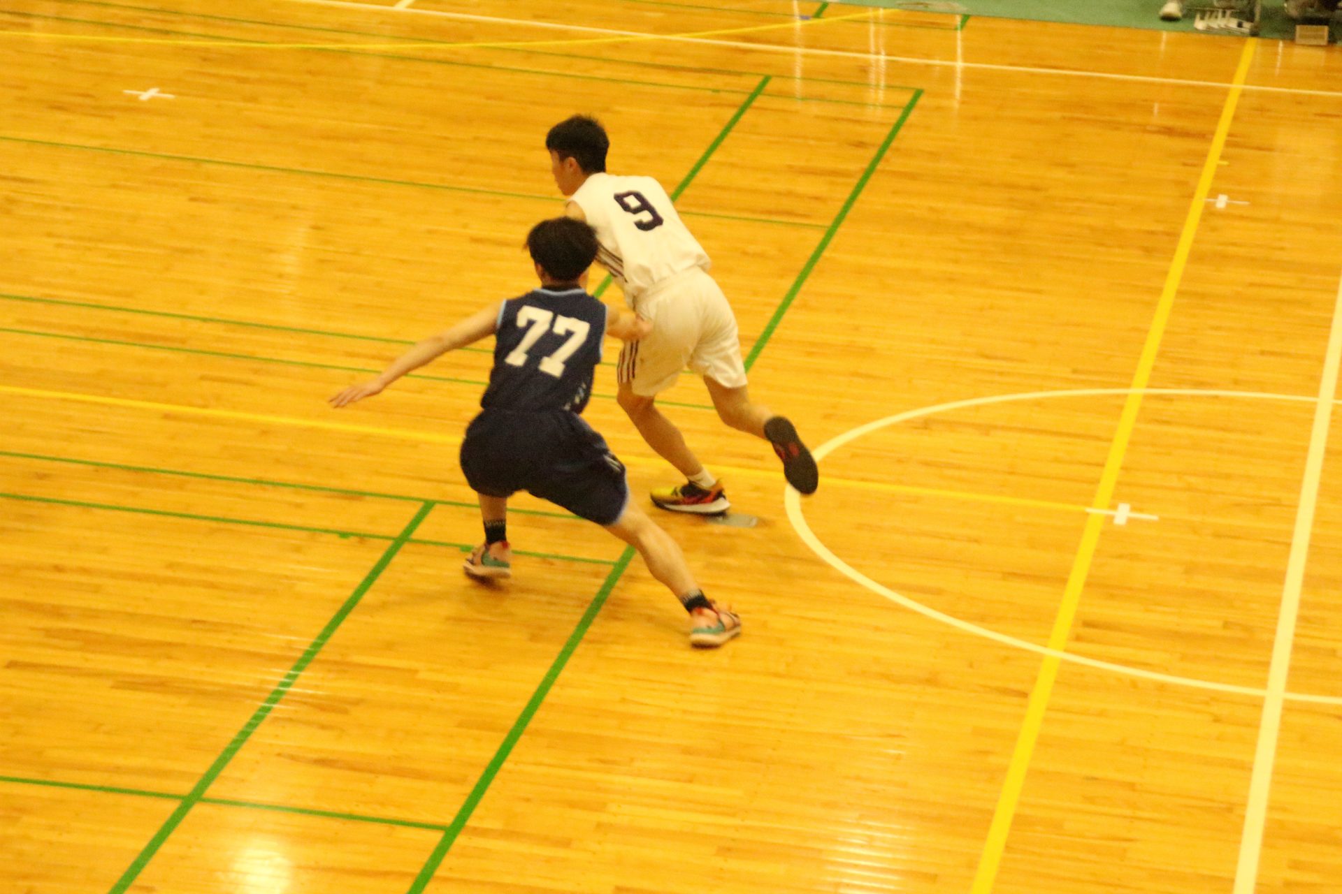 その後も勢い止まらず、「にちがく」らしさを余すことなく表現す。数字には残らない燻し銀の活躍を果たした♯6、7。外回りが安心してシュートを打てるのも彼等あってのこと。 特筆すべきはキャプテン♯4。いつもはクレバーな彼が今日は蝶のように舞い、蜂のように刺す、そんな形容相応しく華麗なプレーから3点、バスケットカウントを3度もと伸び伸びとしたプレーに見ている者のボルテージは最高潮へ!