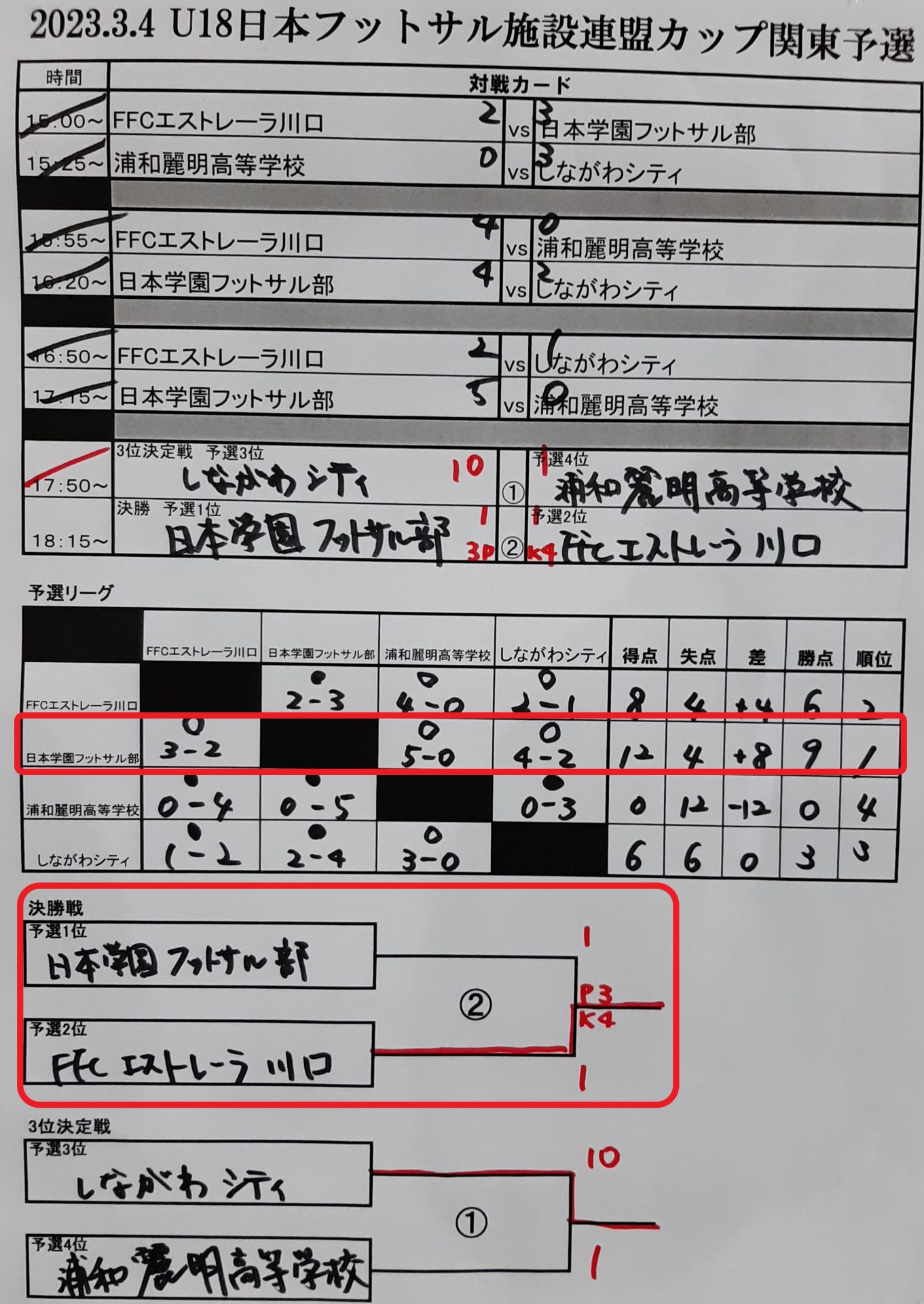 U18日本フットサル施設連盟カップ関東予選 結果