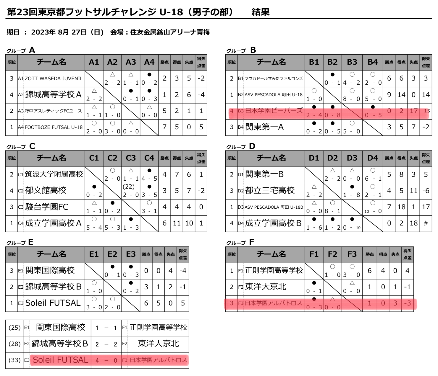 8月27日(日) 住友金属鉱山アリーナ青梅にて