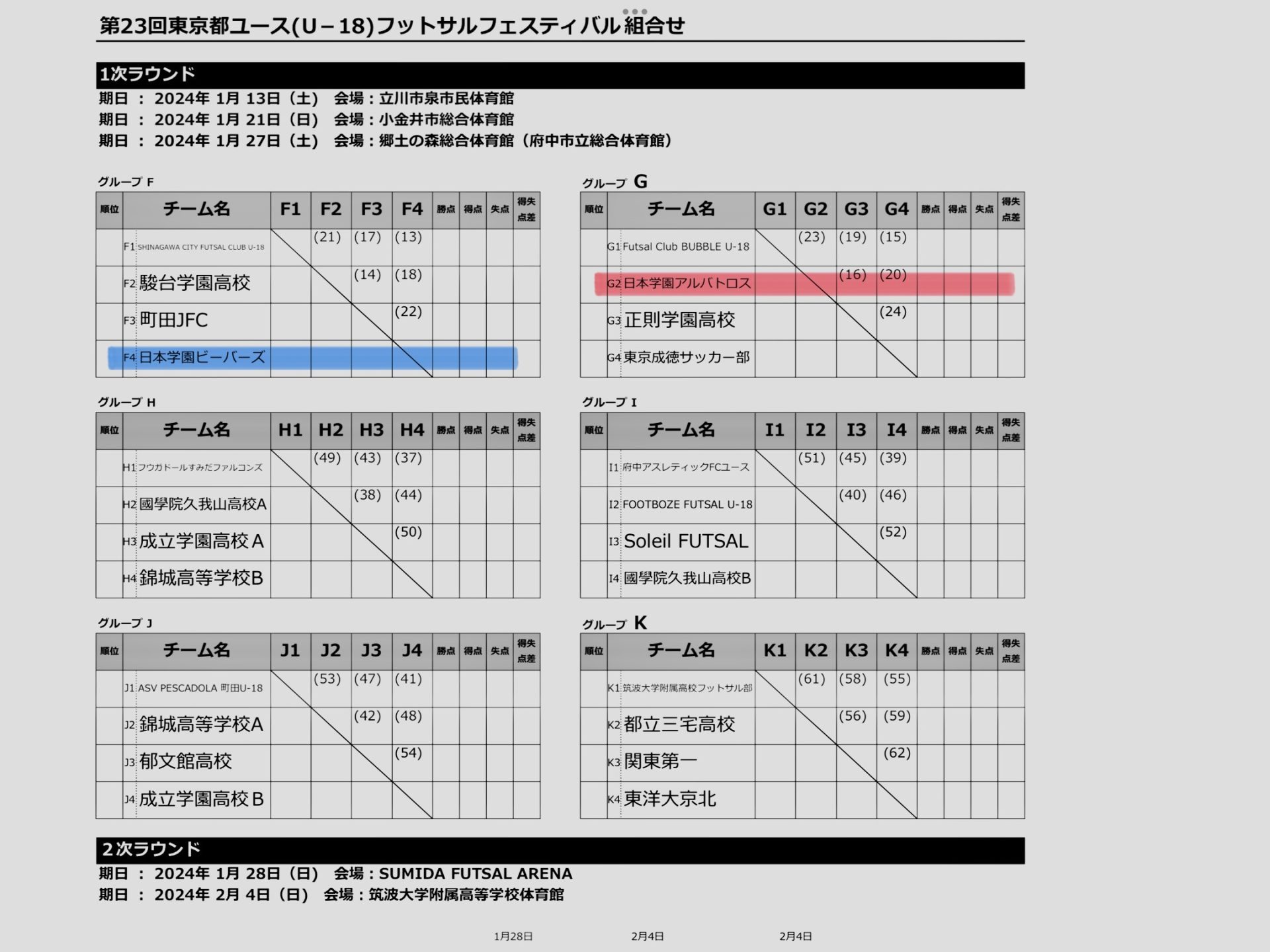 決勝トーナメント進出(1月28日&2月4日)目指して頑張ってきます。
