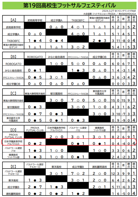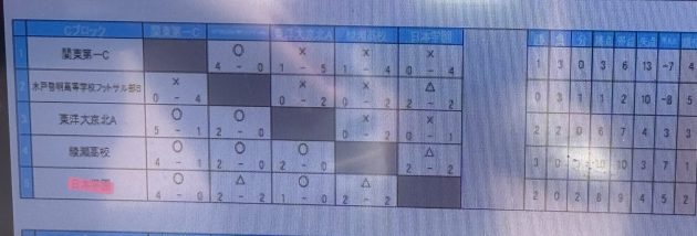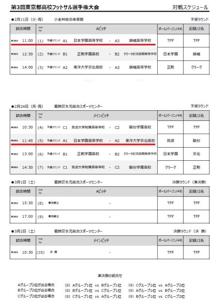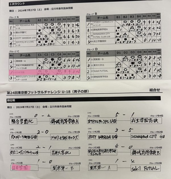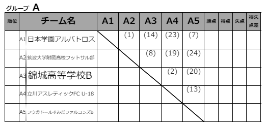 JFA 第11 回全日本U-18 フットサル選手権大会 東京都大会 1次リーグ結果