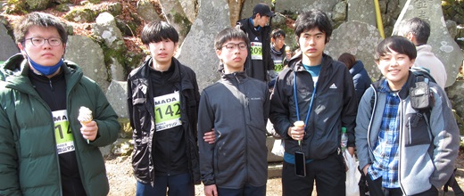高校卒業式の翌日に第40回大山登山マラソンが開催されました。日本学園山岳部高校生部員も出場しました。高校3年生部員との活動はこれが最後です。大山登山マラソンは、小田急電鉄伊勢原駅北口をスタートし、国道246号伊勢原交差点、メ引、大山旧道、阿夫利橋、こま参道、女坂、大山寺を経て、ゴール地点の大山阿夫利神社下社まで、大山街道を登る標高差650m、片道9.0kmのワンウェイコースです。7km付近からゴールまでは、参道から女坂へと続く1610段の石段があります。朝、大会本部のある伊勢原小学校で開会式が行われました。大会連続40回参加者の方や最高齢出走者、たぶん87歳の方が表彰されました。年齢別に時間差で伊勢原駅前をスタートしました。皆、一生懸命走りました。日本学園の保護者の方がこま参道に応援に駆けつけて下さりました。皆、無事に大山阿夫利神社下社まで駆け登りました。水を飲み、アイスを食べたりしながら一休みしました。男坂から下り、バスに乗って伊勢原小学校に戻りました。最後に卒業していく高3部員から、後輩たちにメッセージを伝え、解散しました。