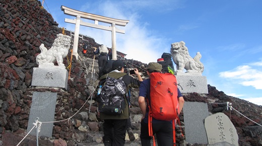 2日目になると1日目とは一変して富士山での登山はいつもの登山よりもきつかったと感じることができました。というのもまず富士山という山は3776mを誇る日本で一番高い山で、そのため空気は薄いし頂上までは遠いしでなかなか大変でした。もう頂上だと思ったら違ったり休憩しても疲れが全然とれなかったり足場が非常に悪くて体が岩に何度もぶつかったりしました。また、特にきついと思ったことは頭痛です急激に上に登ったからか、日の出館出発後20分ほどで頭痛がきました。そのためそこから頂上までが地獄でした。頂上に着いた時に体力的にはまだまだいけそうでしたが頭痛が最高潮に達していてやばかったです。ですがこの苦労を乗り越えて見た頂上からの景色はすごかったです。さすが日本一の山だなと思いました。