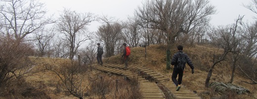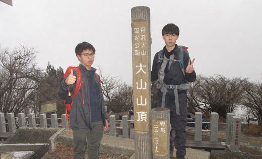 2026年最初の月例山行は、丹沢大山へ行きました。伊勢原駅で集合し、神奈中バスに乗ろうとしたら凄く混んでいたので、次のバスに乗りました。1本後のバスはすいていて助かりました。大山ケーブル停留所から、コマ参道、女坂を登り、阿夫利神社下社へ行きました。今日の天気は曇り空で、相模湾、三浦半島、江ノ島、伊豆大島まで見渡せましたが、富士山は見えませんでした。阿夫利神社拝殿の手前にある「茅の輪」をくぐり、今年の無病息災を祈りました。古来より茅の輪をくぐることによりけがれを祓い、清浄な心身になるという言い伝えがあるそうです。阿夫利神社下社で一休みした後、大山頂上を目指しました。部員たちはだいぶ山歩きに手慣れたようで、さっと頂上に登り詰めました。大山頂上には阿夫利神社本社があります。下社にも大山頂上にも、他校の運動部のグループで賑わっていました。大山頂上で景色を眺めながら寛いでいたらだんだん身体が冷えてきたので、見晴らし台を経由して下山しました。早朝は冷え込んで、都内でも霰や雪がひとしきり降りましたが、伊勢原駅に集合した時にはやんでいました。大山頂上のベンチが濡れている程度で、登山道も歩きやすかったので、部員たちはスイスイと下山しました。阿夫利神社下社近くにある二重の滝は枯れていました。コマ参道にある台湾料理の店で昼食を食べました。大山はコマと豆腐が有名です。帰りのバスの時間を調べたら、次のバスの発車時刻が迫っていました。部員たちは食事を済ませてから大山ケーブル停留所をめがけて走りました。今日の月例山行は、皆、元気に取り組めました。大山頂上をもう一往復できそうでした。