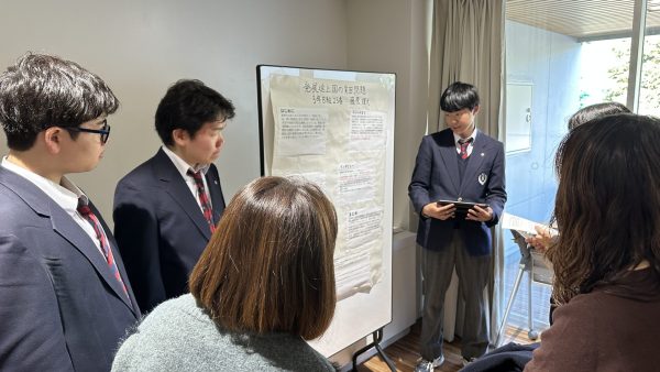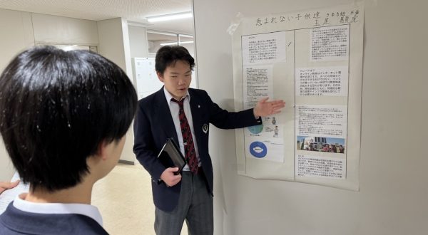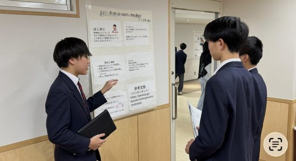 本校が大切にしている「創発学」の集大成 。12月17日に行われた中学3年生によるポスターセッションは、まさに生徒一人ひとりの頭の中に広がっていた「問いの森」を、誰にでも見える形にして並べたような、そんな時間でした 。