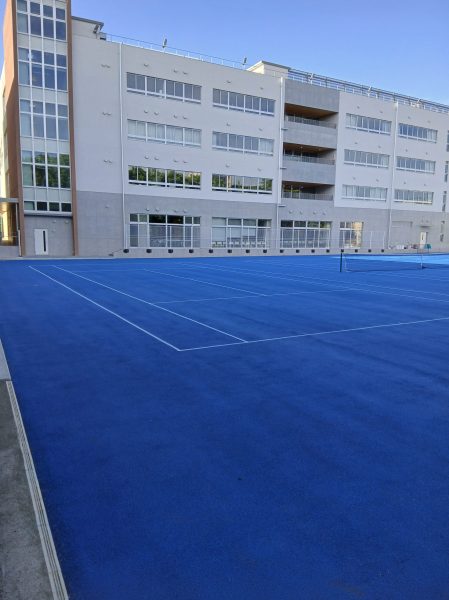 明大世田谷としての新学期がスタートしました。鮮やかなブルーの中庭では、お昼休みになるとお弁当を囲む光景が見られます。暖かい日が続いていることもあいまって、穏やかな新学期の始まりとなりました。